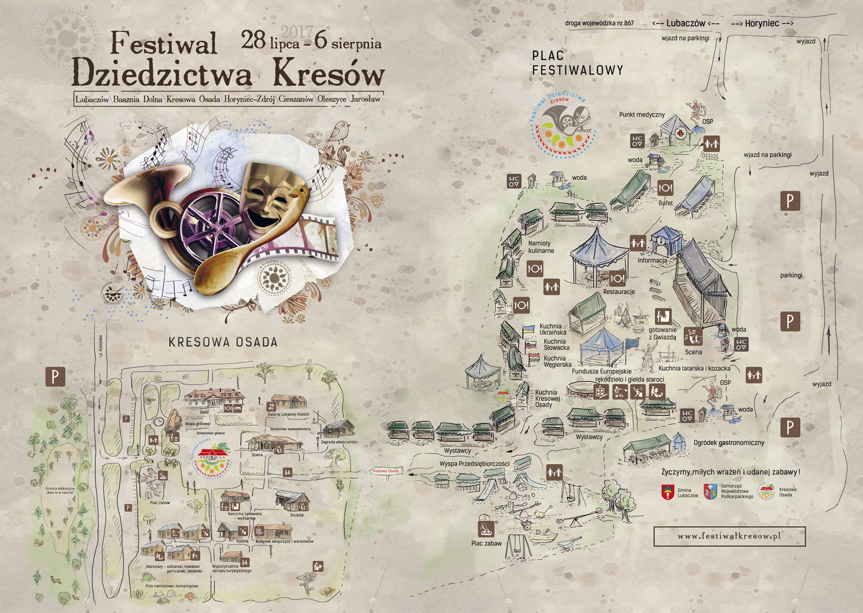 Zachęcamy do zapoznania się z praktyczną mapą na WIELKI FINAŁ Festiwalu Dziedzictwa Krósów, który odbędzie się w niedzielę 6 sierpnia na błoniach Kresowej Osady w Baszni Dolnej.