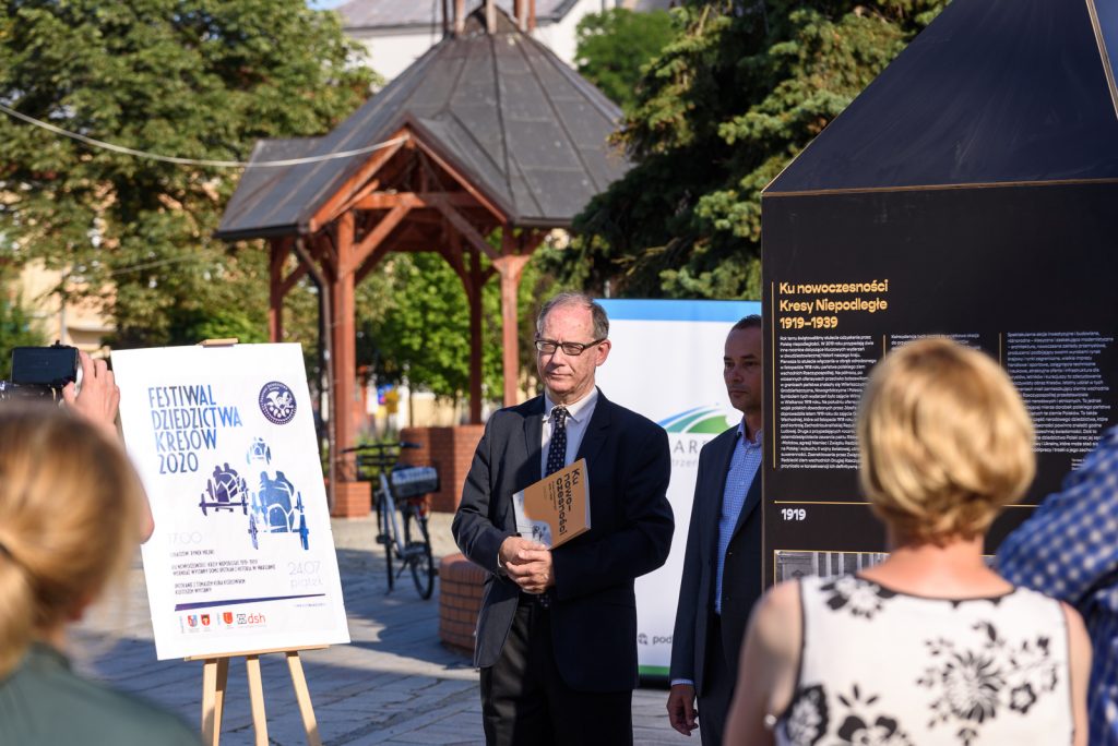 W piątkowe popołudnie Wójt Gminy Lubaczów Wiesław Kapel na lubaczowskim Rynku zainaugurował tegoroczną odsłonę Festiwalu Dziedzictwa Kresów, a Tomasz Kuba Kozłowski z Domu Spotkań z Historią w Warszawie otworzył plenerową wystawę „Ku nowoczesności! Kresy Niepodległe 1919- 1939”.