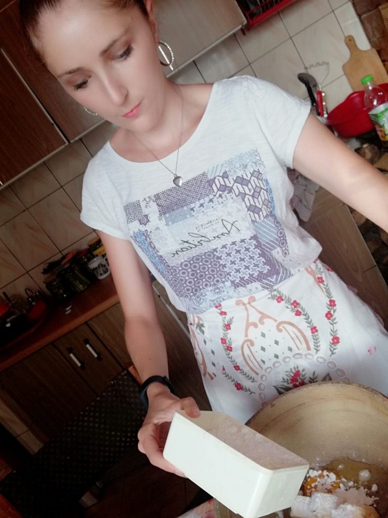 Na koniec wsypujemy proszek do pieczenia.