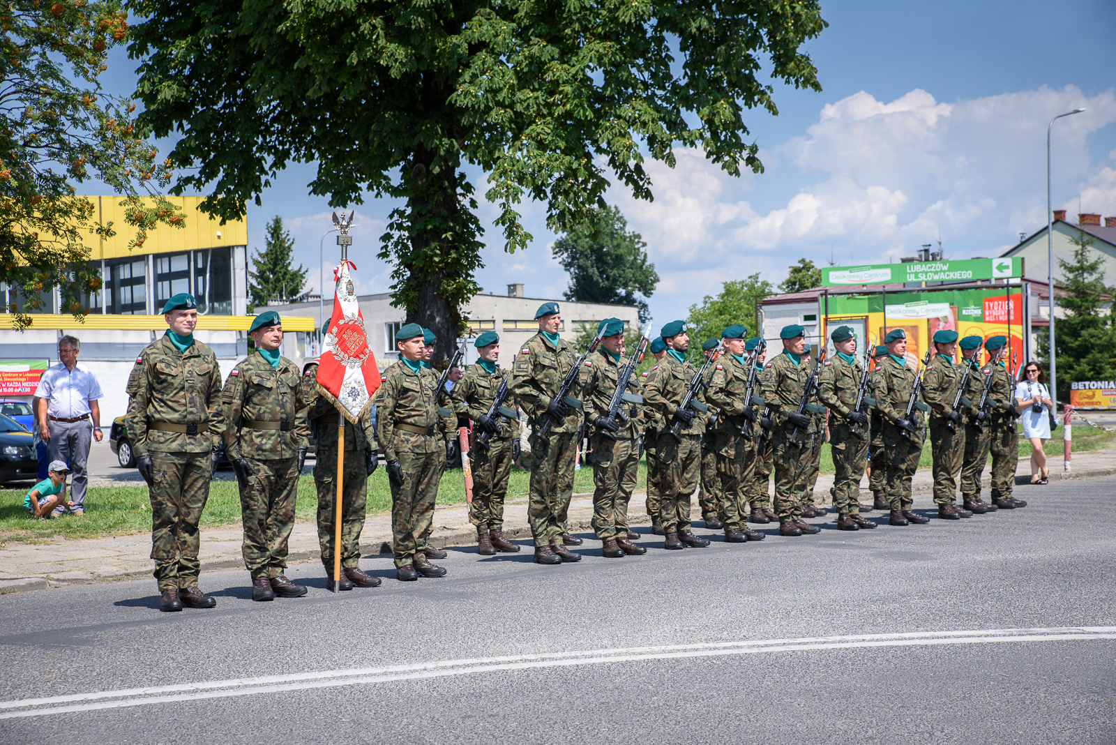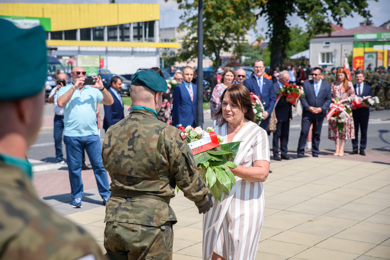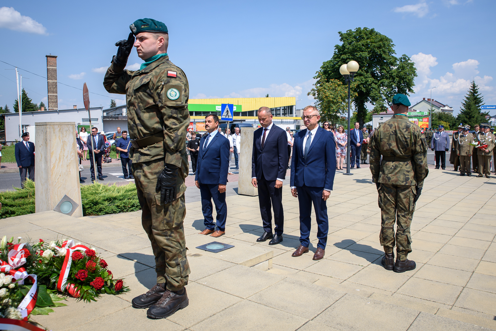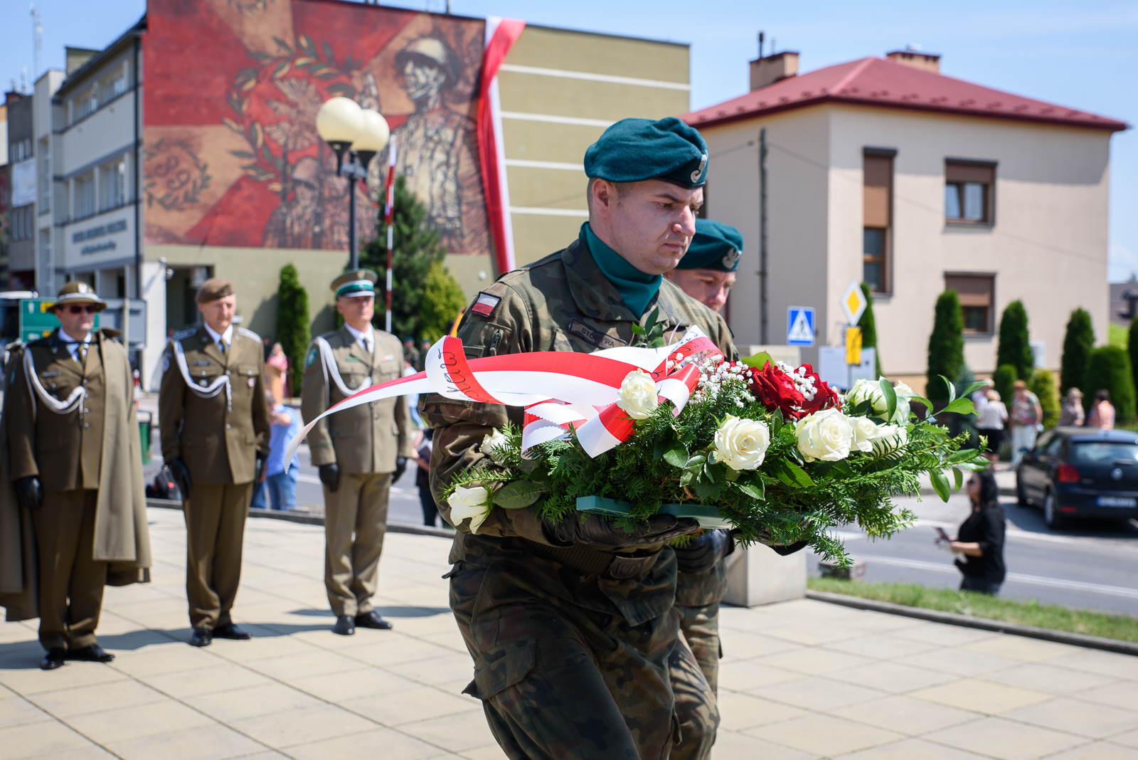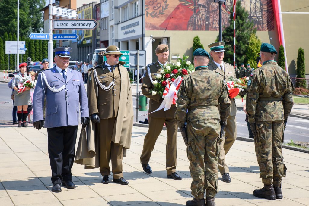 Po odsłonięciu muralu poświęconemu 39. Pułkowi Strzelców Lwowskich, delegacje z udziałem Wojskowej Asysty Honorowej złożyły kwiaty pod Pomnikiem Niepodległościowym.