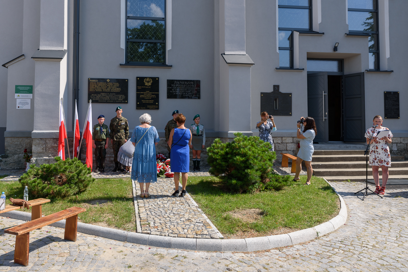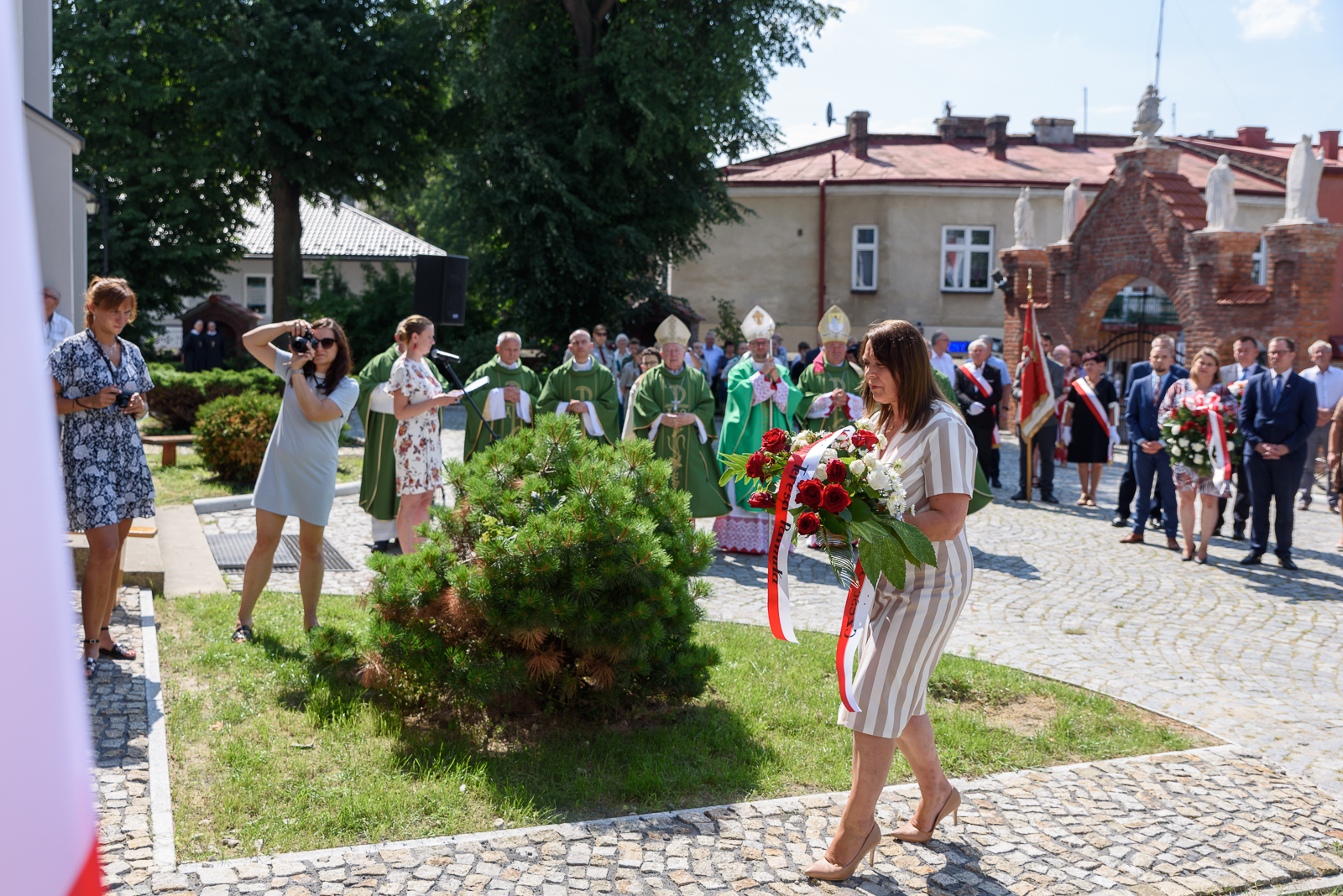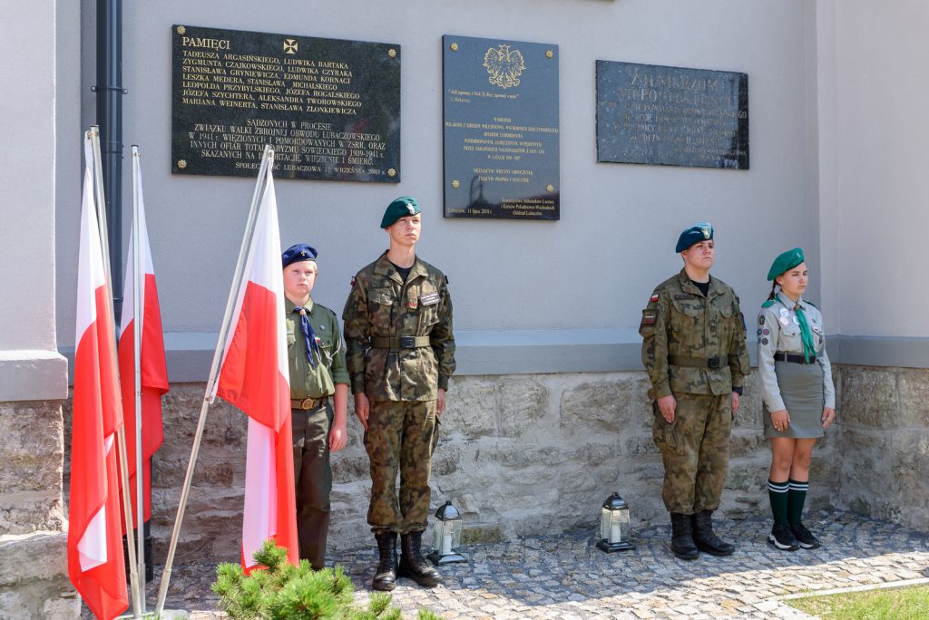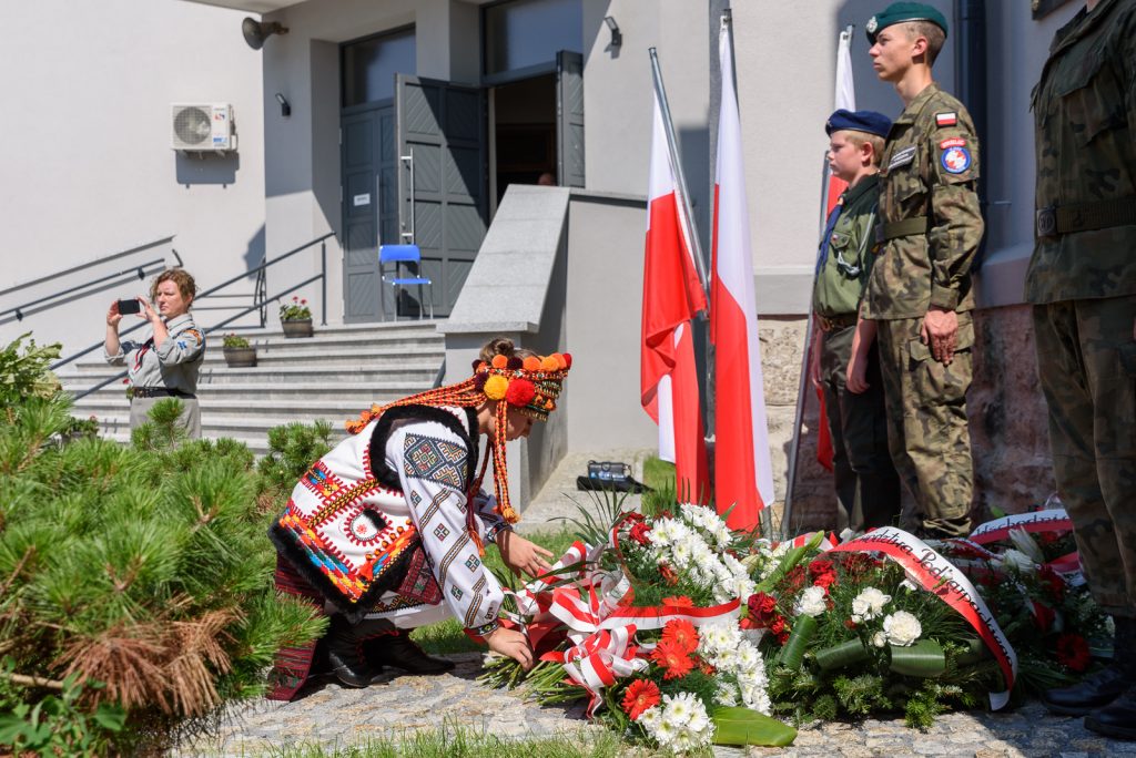 Po Mszy Świętej Kresowej delegacje złożyły kwaity pod tablicą upamiętniającą pomordowanych, zamęczonych i wypędzonych Polaków z Kresów Południowo-Wschodnich Rzeczypospolitej przez ukraińskich nacjonalistów z OUN-UPA w latach 1939-1947.