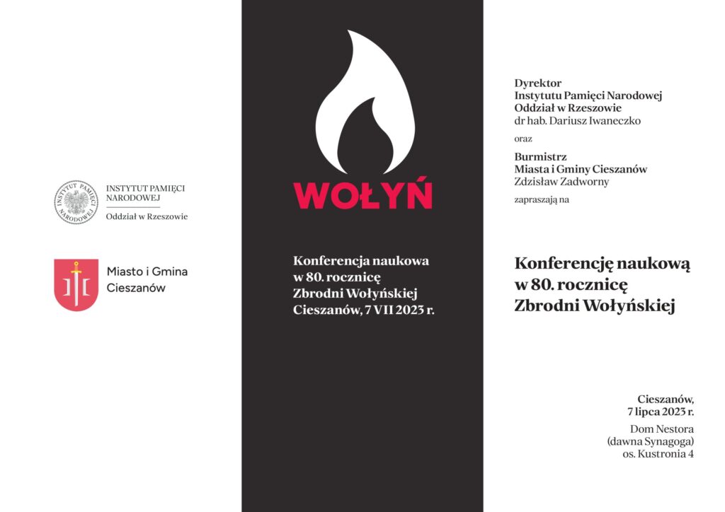 Na konferencję, która odbędzie się w Cieszanowie 7 lipca 2023 r. w Domu Nestora (dawna synagoga) na os. Kustronia 4, zapraszają Dyrektor Instytutu Pamięci Narodowej Oddział w Rzeszowie dr hab. Dariusz Iwaneczko oraz burmistrz Miasta i Gminy Cieszanów Zdzisław Zadworny.