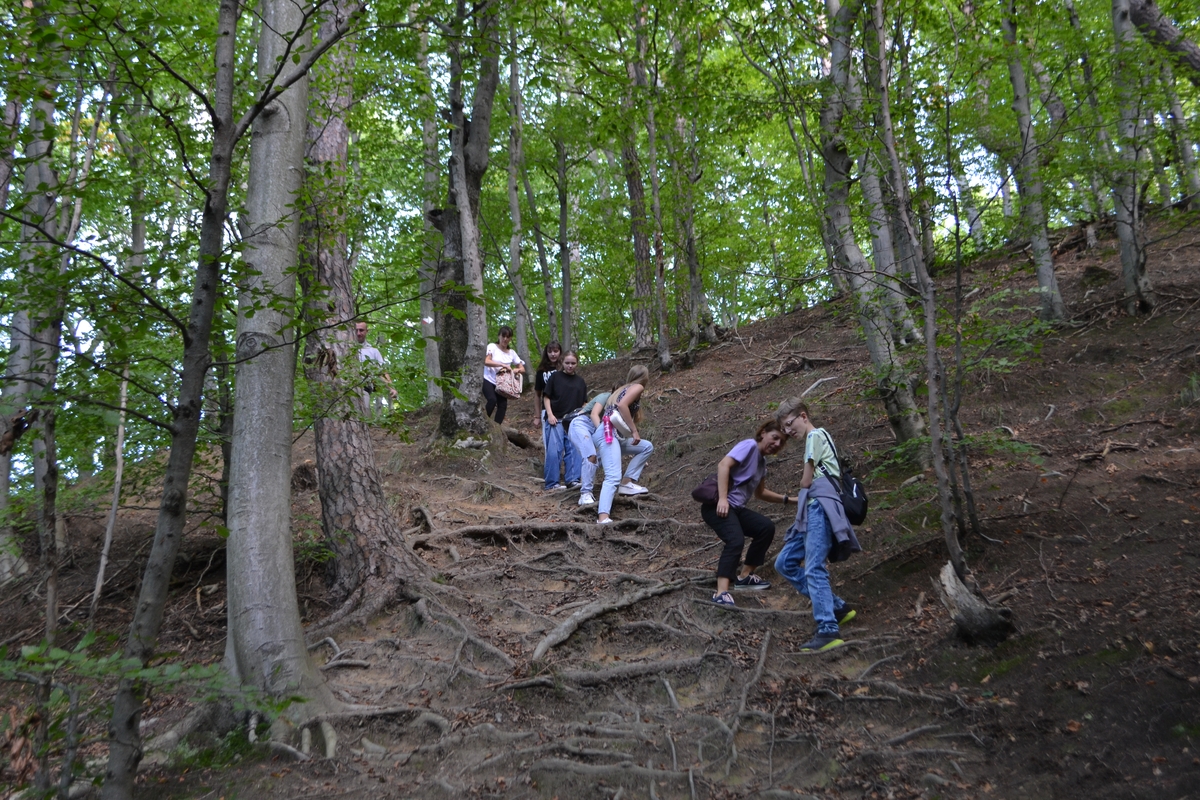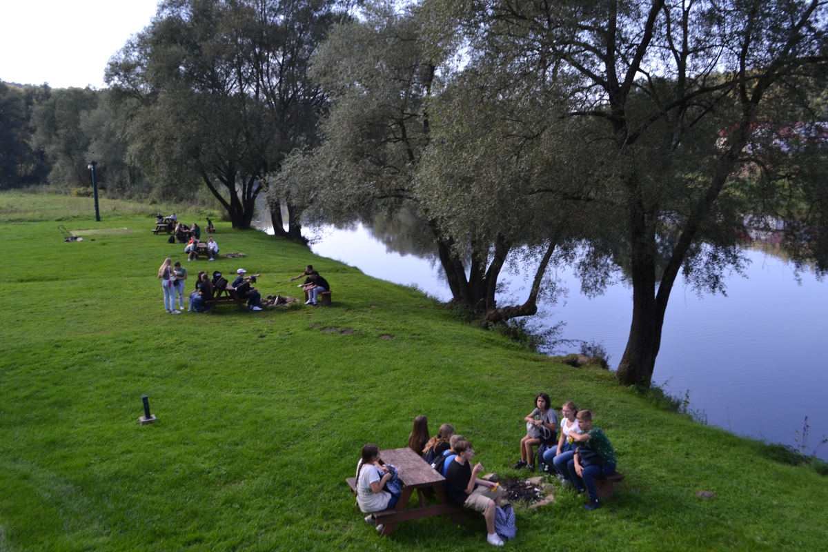 Podążając mohortowskim śladem uczestnicy Zlotu udali się następnie do rezerwatu przyrody “Kozigarb” oraz Słonnego. Ścieżka przyrodnicza oraz wizyta na zakolu Sanu przybliżyła specyfikę terenu oraz miejscowe dziedzictwo naturalne. W dalszej części wyprawa trafiła do Posady Rybotyckiej, w której znajduje się wyjątkowy obiekt w skali całego kraju: murowana cerkiew obronna z XVI wieku. Następnie uczestnicy Zlotu udali się do Rybotycz, gdzie z kolei zwiedzili – malowniczo położony – zabytkowy cmentarz żydowski. Uczniowie poprzez namacalne dziedzictwo minionych wieków mieli okazję poznać historią tego miejsca, a jednocześnie zetknąć się z typową dla Kresów dawnej Rzeczypospolitej mozaiką kultur i religii. Ostatnim przystankiem pierwszego dnia był Krasiczyn, gdzie odbyła się część edukacyjna, w tym praca projektowa w grupach, oraz integracyjna.